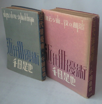 これは、 ソフビとは関係ありませんが、 『大怪獣バラン』で、 バラン退治に重要な役割を果たす、 杉本博士を演じた千田是也さんの、『近代俳優術』。 演劇のバイブルです。 以前、舞台で共演した先輩の女優さんが、 芝居を始めた頃に 千田さんから直接薫陶を受けたそうで、 「その教えを貴方にも・・・」と プレゼントしてくれました。 上巻が昭和24年発行、 下巻が昭和25年発行、 という古い本ですが、 芝居をカタチから入ろうとする僕に 演技の基本を学ばせるべく、 古本屋やネットで探して下さったみたい。 感謝、感激。 |