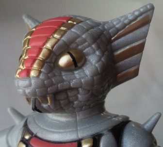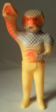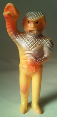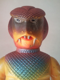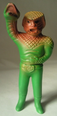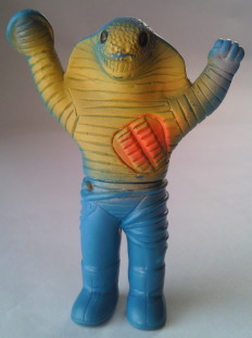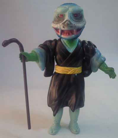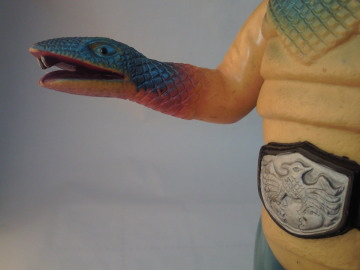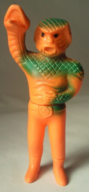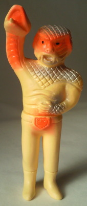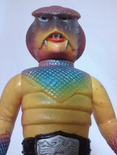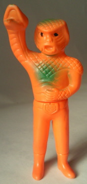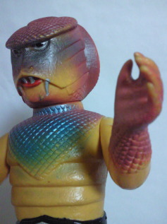 コブラ男のミニサイズ人形で いちばんポピュラーなのが、 この、成形色がクリーム色のバージョン。 鱗のシルバースプレーの効果も相まって、 見る者に、 爬虫類独特の生臭い印象を与えています。 |
