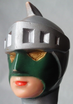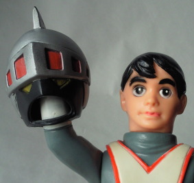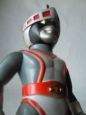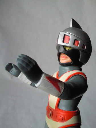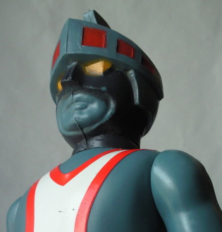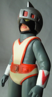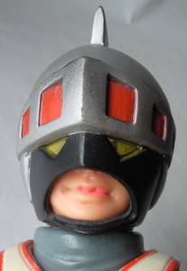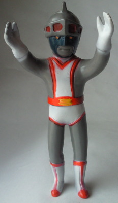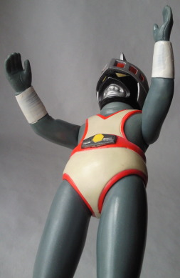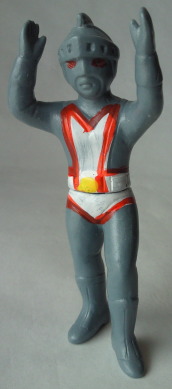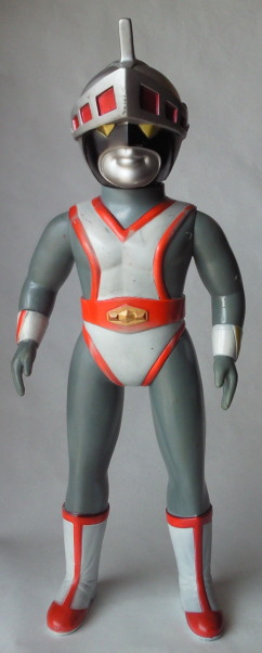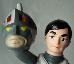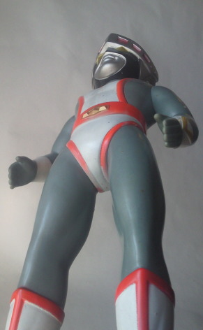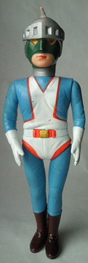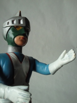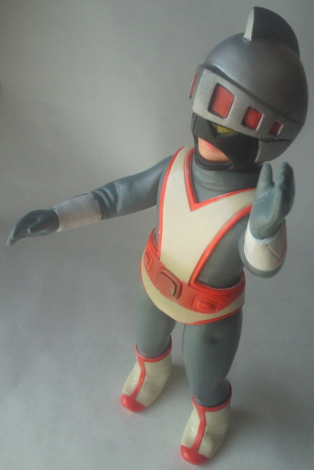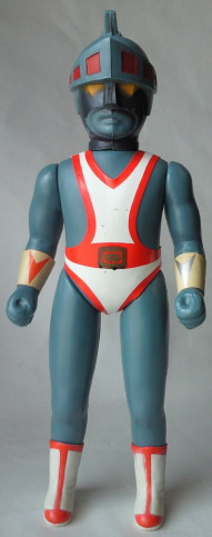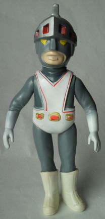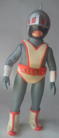 | こちらは、 ポリエチレン製の人形。 全長約33センチで、メーカーはトミーです。 手がグーなのと、凛々しい顔の表情とで、 バンダイのソフビ版よりも力強い印象を受けます。 |