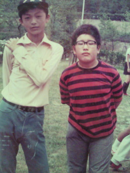 | 僕の隣にいるメガネの子は、 当時近所に住んでいた林修君。 僕が中1で彼が小6の時の写真である。 彼は、今や 「いつやるか?今でしょ」 などという流行語を生み出し、 予備校の先生にして全国的な有名人になってしまったが、 この写真の数年前には、 ライダーカードを僕とトレードする、 仮面ライダーが大好きな普通の子供であった。 ただし、 いちばん好きなお菓子はマロングラッセ、 という、 なんかマセたガキだったが・・・(笑)。 |