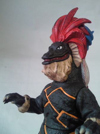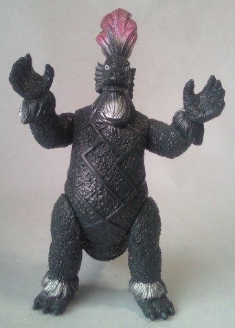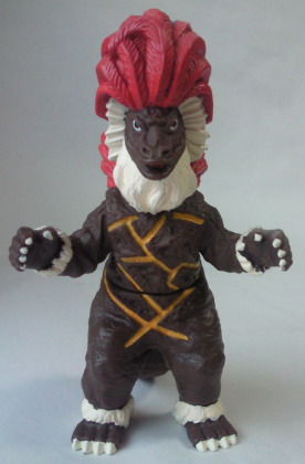 『ほらふきマーチ』 大林宣彦監督の映画に、『四月の魚(ポワソン・ダブリル)』という作品がありました。 高橋幸宏さん演じる、 有名女優の夫にして売れない映画監督、という男が、 以前撮影で訪れて世話になった南の島の酋長から 「日本に行くので、4月1日にお宅に立ち寄る」 との手紙を受け取り、 友情の証として妻を一晩提供する、というその島の風習に合わせるため、 開放的なセックス観を持つ若い女性(妻の替え玉)を用意して迎える、 というコメディでしたが、 来日する南の島の酋長を演じていたのが丹波哲郎さんで、 紹介されたその若い女性を一目見て気に入り、 “この女を今晩抱ける” という期待の中、 デレデレ・イチャイチャしながらフランス料理の接待を受けるシーンは、 演技やストーリーに関係なく、 只々、丹波さんが “地” で楽しんでいるように見えて、 思わず吹き出してしまった記憶があります。 とても印象的でした。 そこで、 その、丹波さんが演じた南の島の “酋長” に因んで、 怪獣酋長ジェロニモンのソフビを紹介しましょう。