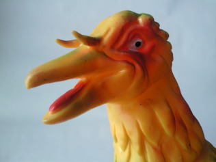 | 3体とも、全長約10センチ。 向かって左端と真ん中の2体がブルマァク製で、 右端のド派手な彩色の人形は海賊版です。 手に乗せて、餌をあげたくなっちゃいます(笑)。 |