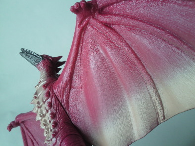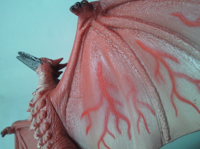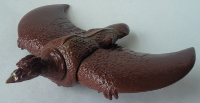 | これは平成8年に発売されたファイヤーラドン。 バンダイ製 ゴジラForever(全長約16センチ、横幅約32センチ)。 先述の、映画公開時に発売されていたものの流用ですが、 このように、 彩色が異なるのと、翼の内側に血管が描かれているのが特徴です。 |