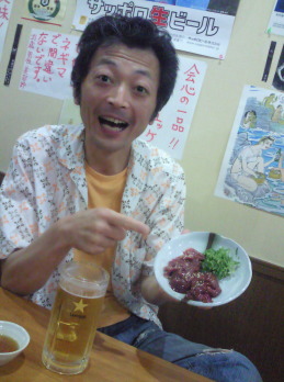 | 宴もたけなわではございますが、そろそろお時間。 みんなは、 〆(しめ)にラーメンやお茶漬けを注文しましたが、 僕の〆(しめ)は、 本日二皿目の、肝刺し(笑)。 もう愛しちゃってます、心から。 |