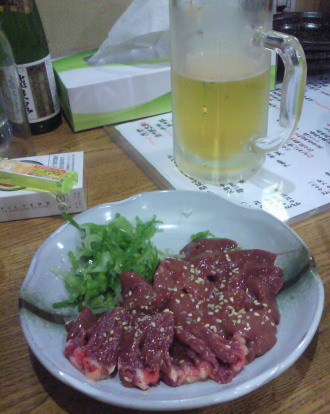 | やっぱり、まずコレ。 肝刺し。 “美しい味” と書いて “うまい” ・ “おいしい” と読む事が、納得出来ます。 ホント、最高です。 ありがとう、大将! ありがとう、鶏! |