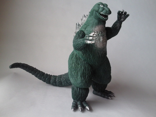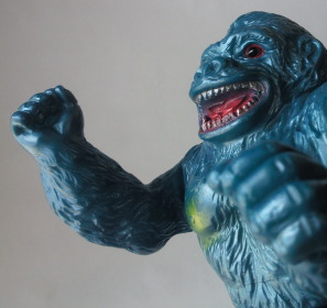 | 昭和40年代のはじめ、第1次怪獣ブームの頃に発売されていたソフビです。 キングコングの人形として開発されながらも、 版権が取得出来なかった為この商品名になったのは、ソフビコレクターの間では有名な話。 でも、 この圧巻の造形美には、そんな裏事情など吹っ飛ばされてしまいます。 見て下さい、この腕、この足、このお尻・・・。 マルサン、って凄いメーカーだったンだなぁ、 って、改めて実感します。 |