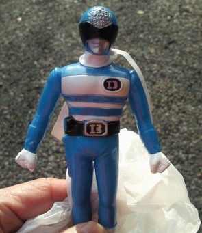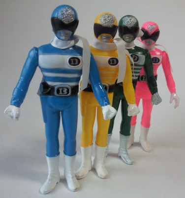 | まぁ、 『電子戦隊デンジマン』の放映時、僕は高校生でしたので、 ほとんど放送はまともに観ておらず、 あぁ、今はこんなヒーロー番組がやってるンだぁ・・・、 って認識してた程度でしたので、 ウルトラやライダーのソフビを蒐集するのと同じ “熱さ” で デンジマンを揃えようとしていなかった事は事実ですが、 まさかリーダーのレッドを未入手で、 しかもそれを把握していなかったとは・・・。 こんな愛情の薄さでは、 デンジマンを仮面ライダーだと言って売っていたおじさんを 非難する資格はありませんよね。 お恥ずかしい限りです。 いかん、いかん。 頑張って早くデンジレッドを探して、 今度こそ5人揃えよ、っと。 |