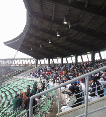 屋根のあるネット裏のスタンド席において、