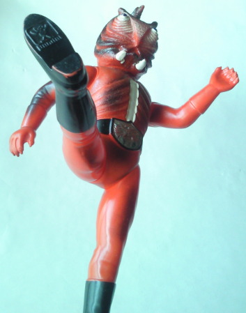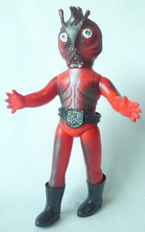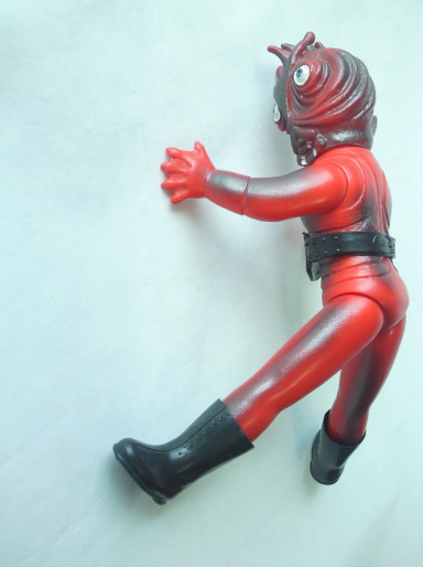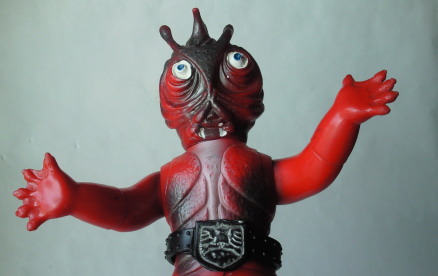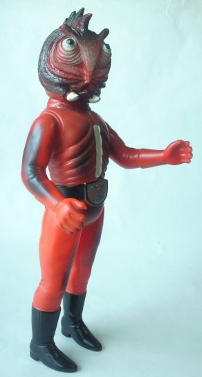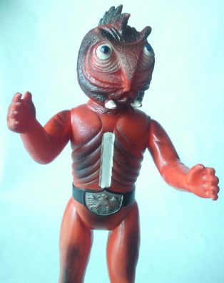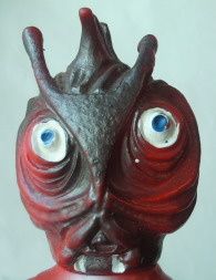 | そして、 この人形の顔の全体的な歪み、 特に、左右の位置が微妙にズレてる目からは、 俺って、ヤモリの怪人? イモリの怪人? という人形自身の その困惑が感じられて、実に味わい深いです(笑)。 何を思って こんなふうに目の位置をズラしたのでしょう? 原型師の方は “天才” ですね。 |