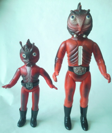 | 昆虫や爬虫類が大好きだった子供の頃と同じようには ヤモリを愛せなくなってしまった僕ですが、 その分、 ヤモリの怪人人形を、子供の頃以上に愛せる大人になりました。 だから、 たとえ神様に見放されて、運気も上がらず家も栄えず乏しい日々がこのまま続いても、 心までは貧しくならないので、全然平気です。 強がりじゃないですよ。 僕の本当の守り神は、ソフビを愛する心の中にいるのです。 奥深い魅力のアンティークソフビに、感謝。 |