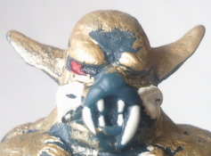| こちらは、 ミニサイズ人形で全長約11センチ。ポピー製。 スタンダードサイズの人形と違って、 このように 成形色が2種類存在するので、 クリーム色の方を ゾル大佐の正体の狼男(金色)、 黒の方を 実験用狼男(紺色)、と それぞれイメージして楽しむ事が出来ます。 |