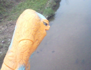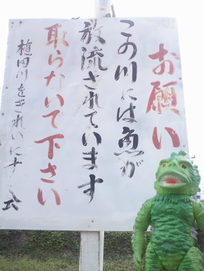 | ラ「あぁ、放流してあるンだぁ。 取らないでください 植田川をきれいにする会・・・、か。 けど、 それ、鯉だろ? 鯉なんか泳がしたって、べつに川はきれいにはならないンだけどなぁ・・・。 それどころか、 生態系に悪影響を与えて、水辺が壊滅しちゃうよ」 |