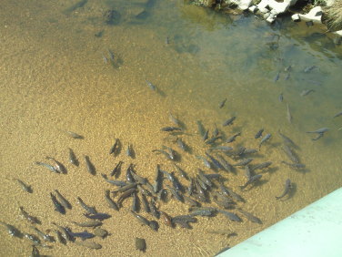 メ「着きましたよ」 ジ「ほら、魚もあんなにたくさんいますよ、ラゴンさん」 |