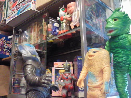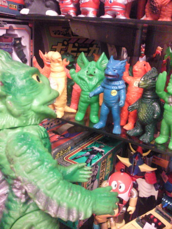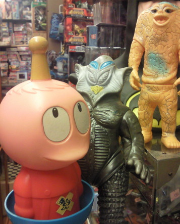 | メ「サラリーマン時代はねぇ、 しょっちゅう、こちらのゲイトウエイさんでもソフビ買ってたンですが・・・。 昔はここのお隣さんが “マタンゴ” って名前のカレー屋さんでね」 ラ「あぁ、憶えてる、憶えてる!」 メ「そこで、うちの御主人様は、 窓際の席に座って カレーを食べながら黒ビールを飲む、ってのが 休日の昼間の習慣だったンです。 んでもって、 お酒弱いからすぐに眠くなって、 そのままうたた寝してると、 ガラガラガラガラ、ってゲイトウエイさんのシャッターが開く音が聞こえてきて、 それで目を覚ます」 ラ「んでもって、 マタンゴさんを出てゲイトウエイさんに入り、 店長さんと雑談しながらソフビ購入」 ジ「ずいぶんと、のどかな人生だったンですねぇ」 ラ「それが今や、 明日喰う米も心配な・・・(苦笑)」 |
