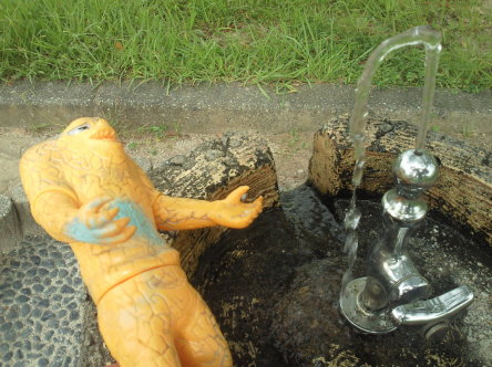 | ジ「うわっ、水だっ!助けて~」 ラ「水が苦手なのに、なんで水を飲もうと思ったンだよ!?」 メ「しっかり者のようで、意外と “天然” ですね、ジャミラさん」 |