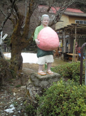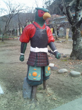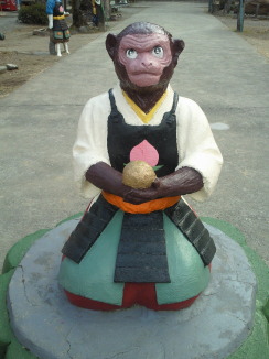 まずは、 今年の干支でもある “サル” がお出迎え。 持っているのは、 “きびだんご” でしょうか。 ・・・あんまり美味しそうじゃないなぁ(笑)。 |
