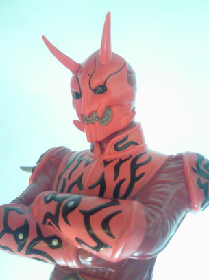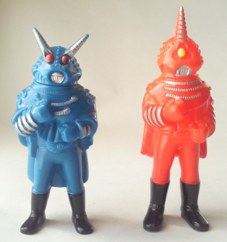 青鬼がモチーフのアオニーダ(全長約10センチ)と 赤鬼がモチーフのアカニーダ(全長約12センチ)。 『アクマイザー3』放映当時(昭和50年)のソフビで、 製造元はタカトクで発売元はブルマァク、 という商品です。 |