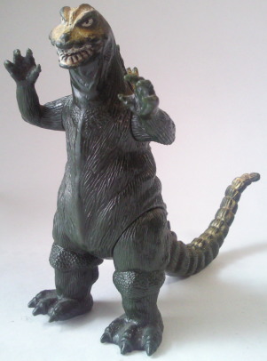 | ブロマイドやメンコで有名な山勝が 昭和58年に発売した、 ゴジラ関係のソフビ怪獣人形です。 |