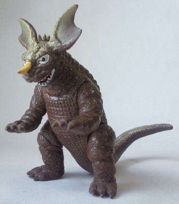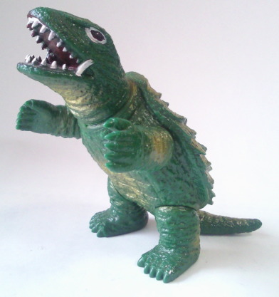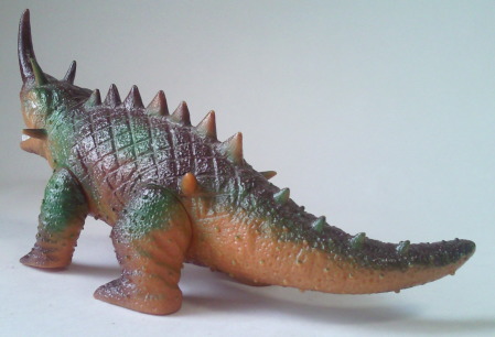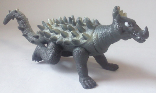 | 先に紹介した日東河田のバルゴン同様、 初めて、実物通りの四足歩行状態で商品化。 やっぱ、 バルゴンもアンギラスも、この状態の方が良いですね。 |