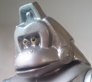 | メカニコング 全長約14センチ。 ラドンでもミニラでも ヘドラでもガイガンでもなく、 このメカニコングがラインナップに入っているのは、 なんとも乙ですね。 このシリーズ全体のイメージとして最初に述べた、 造形も彩色も、 シックというかスマートというか、 無駄に力を使っていない自然体な雰囲気、 をまさに体現する1体。 おとなしやかな妙味に溢れています。 |
