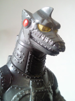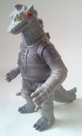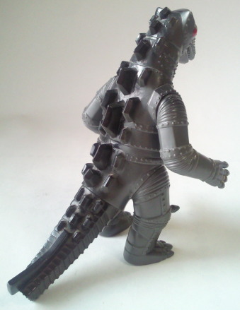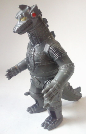 ポピーのキングザウルスシリーズのメカゴジラ人形が、 勝手に目玉を描き込んでしまった残念な人形だっただけに、 まるで軌道修正を図ったかのような、 落ち着きのある造形です。 メカゴジラのソフビはリアルでカッコいい、と すでにブルマァクの時代から決まっていた事ですから(笑)。 |