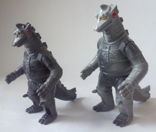 | ゴジラ 向かって左側が全長約15センチ、右側が全長約14センチ。 |