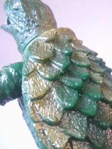 | 初めて、 実物通りの四足歩行状態で商品化されました。 ソフビ怪獣人形がリアル造形の時代に向かっている現れですね。 皮膚のザラザラした表面処理も、マルサン・ブルマァクの時代のソフビには無かったものです。 |