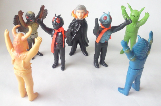 こちらは、食玩ソフビ。 上の人形と同じく平成14年の発売です。 バンダイ製 仮面ライダーソフビ道、 全長約11センチ。 カッコいいです。 |