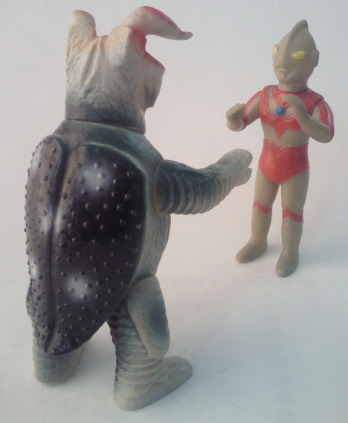 | ゼットン二代目だけ、 試作品止まりで未発売のまま終ってしまった理由について、 バルタン星人二代目の人形を作るはずが、 どこで何が行き違ったか、 同じニ代目でも バルタン星人ではなくゼットンの方の二代目の人形を 造形スタッフが作ってしまい、 出来上がってきたこの試作品を見た上司に、 「誰がこんなモン作れ言うたンじゃいっ!」 って担当者が怒られた、 なんていう、 コントみたいな裏話(笑)を噂で聞きましたが、真偽は不明です。 |