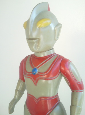 | 僕は、入手の際、 この試作品はこの世に数体しか存在せず、 すべてカラーリングが異なる、 と聞いていたンですが、 平成22年に発売された『ウルトラソフビ超図鑑』(ワールドフォトプレス・刊)に 載ったものは、 パッと見、これと同じカラーリングでした。 くるみ塗装が施されていますので、 もしかしたら、成型色が違っているのかもしれません。 現存する数体のカラーリング、すべて知りたいなぁ・・・。 いつの日か、 所有者が全員それぞれ自分のものを持ち寄って会合でも開き、 互いにカラーリングの違いを確かめつつ、 お酒を飲みながらひとつひとつ鑑賞し合う・・・、 そんな日が来たら愉快だろうなぁ、って思います。 |