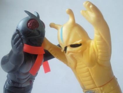 喪服に対する偏見や失考に嘆いて書き始めた今回の原稿ですが、 こうやって、 ソフビを通して子供の頃を思い出すと、 やはり、 てき面に気持ちが穏やかになりますね。 コレクションの癒しの力を、今、改めて感じております。 それにしても、 喪服で飲食店に入るのはマナー違反か? なんていうネット上の話題からも ショッカー怪人を瞬時に思い出すなんて、 僕の頭の中は、 どんだけ “仮面ライダー” に支配されているのでしょう? 我ながら呆れてしまいます(苦笑)。 幼稚すぎると嘲笑され、 「ダメだ、こりゃ」 とつぶやかれるのは、僕の方かもしれませんね(笑)。 |