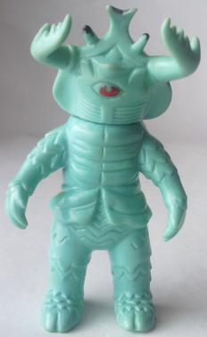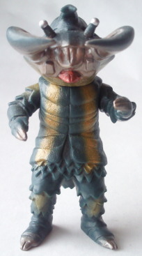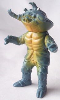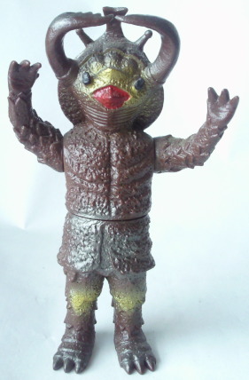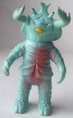 | これもマルサン製。全長約23センチ。 さすがに人気怪獣の人気商品、更に追加生産されたようで、 今度は全身のブルーの塗装が、メタリックからマットなものにマイナーチェンジしています。 何期の人形か、は不明。 |