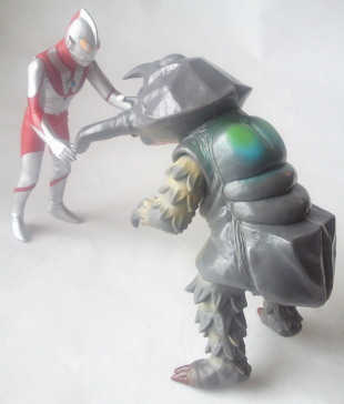 | バンダイ製 プレイヒーロー VS ウルトラマン対決セット、 全長約9センチ。 上の商品と同じ型を用いて、 ゴモラ(レイオニックバースト)人形とのセットで、 平成21年に発売されました。 |