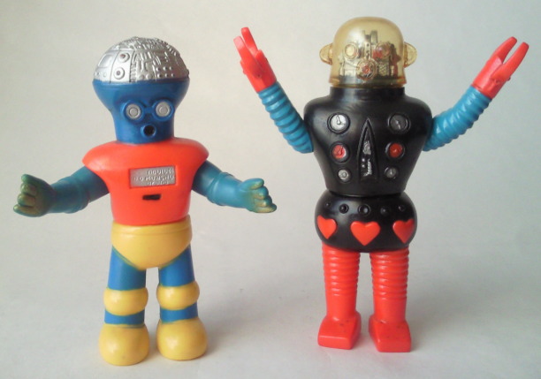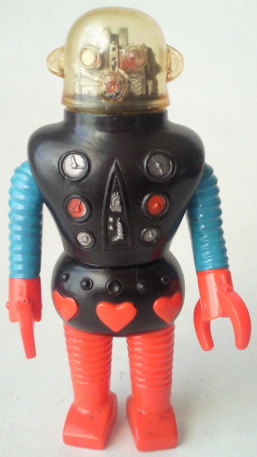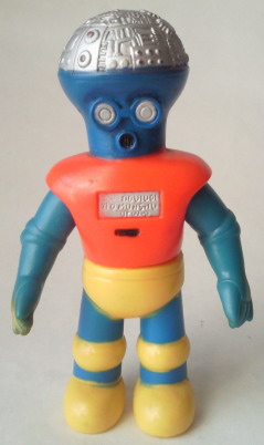 ロボメカ ポピー製 ミニサイズ、全長約12センチ。 ガリ勉ロボット・ロボガリの弟。 弟ロボット、つまり、新式な機械ゆえ、 自分は兄(旧式)のロボガリよりも優秀である、と主張する、生意気なヤツです(笑)。 |