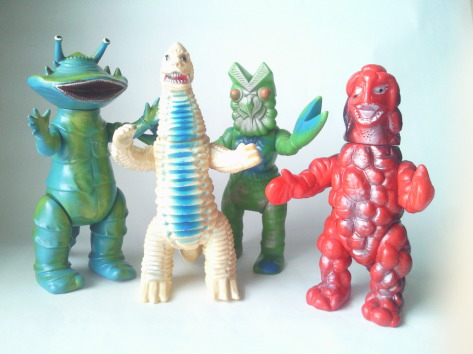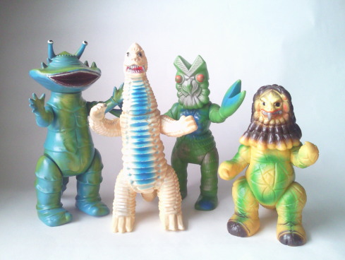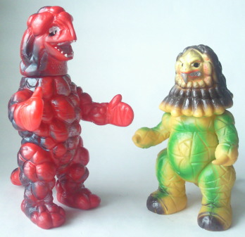 | シュガロンとダンガー・・・。 今、この2体のソフビを見つめながら、 あの番組に出てきたの、どっちだったっけなぁ・・・? と、改めて半世紀近く昔の記憶を思い起こしています。 答えは出ませんけど(苦笑)。 |