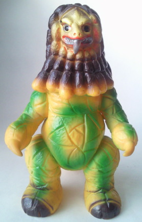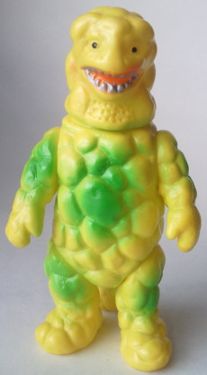 | これは、 先述のブルマァク製スタンダードサイズの復刻版。 ブルマァク倒産後、 円谷エンタープライズから、昭和55~57年の間に発売されています。 ただ、 倒産前から既にこのカラーリングで売られていた、という説もあり、 もしかしたら、復刻版ではなくて、 “後期”・“成型色違い”という、れっきとしたブルマァクソフビかもしれません。 |