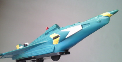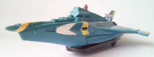 | まぁ、でも、 妻がいてもいなくても、 こんなカッコいい万能戦艦に乗り込んで、 空を飛び、海に潜り、悪者をやっつけるMJ隊員に、 心底憧れた幼い日の熱い思いが、 このソフビを手に取り見つめる度に甦って胸がジーンとなる事に、変わりはありません。 思い出の空間を飛び回る、まさに “夢の乗り物” です。 |