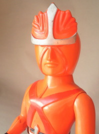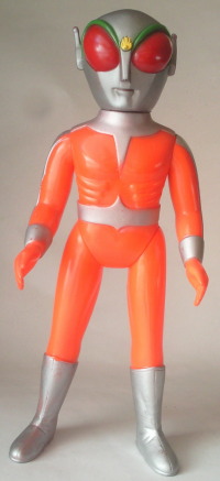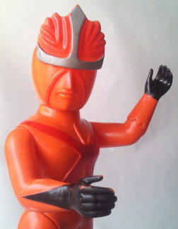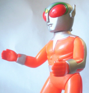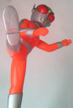 | レインボーマン ダッシュ2(炎の化身) バンダイ製 、全長約38センチ。 これは、 ゲイトウエイさんに通い出して2、3年経った頃に購入したソフビです。 “売約済み” だったのですがキャンセルとなり、 幸運にも手に入れる事が出来ました。 |