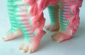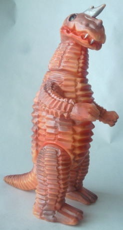 | そんな、 『ウルトラマン』を夢中で観ていた僕ら子供たちからしたら、 ありえない彩色だったこのアボラス人形も、 ピンクのドドンゴ人形と並んで、今では、雅やかな癒しソフビの最高峰。 |