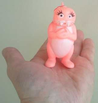 さて、次は、 ピンク色した女性のキャラクターのソフビを、紹介させていただきましょう。 やっぱ、酒の席には女っ気も無いとね(笑)。 |