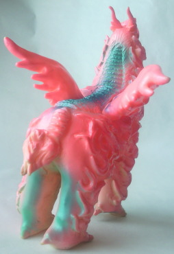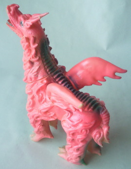 | 『ウルトラマン』第12話「ミイラの叫び」に出てきたドドンゴという怪獣を 玩具・人形にするにあたって、 いったい、何をどうしようと考えたら、“ピンク” なんて発想になるのか・・・(笑)。 まぁ、単に、 オモチャ屋さんの店頭で見栄えがするように・・・、 と選んだ色なンでしょうけど、インパクトがあまりに強烈なのです。 芸術的な造形も相まって、 もう、実物のドドンゴが何色か、なんて、どーでもいいと思えるほど(笑)、 その鮮烈な美しさが、感受性を揺さぶってくれます。 |