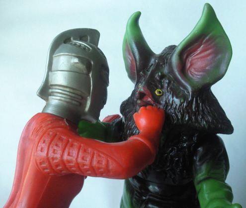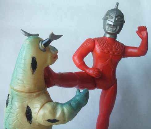 当時持ってたソフビ怪獣人形たちとこのポリ人形のセブンを闘わせては、大いに胸をときめかせたものです。
