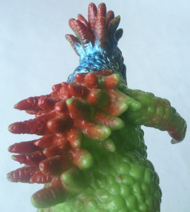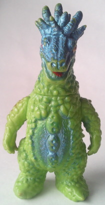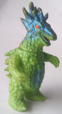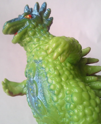 ベロクロン マルサン製 、全長約12センチ。 これは、 今から30年以上前、ソフビコレクションを始めて間もない頃に、 名古屋市内の駄菓子屋で見つけたものです。 |