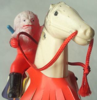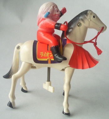 | 快傑ライオン丸 天馬 タカトク製、全長約11センチ、高さ11センチ。 ライオン丸がソフビ製で、 天馬はプラスチック製(ゼンマイ走行)。 これも、 ソフビコレクションを始めて間もない頃に入手したものです。 |