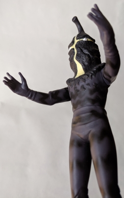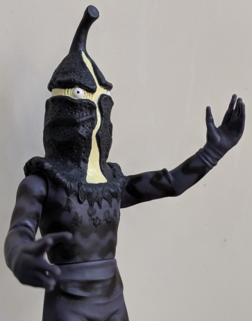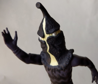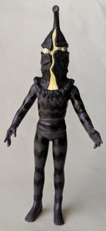 バンダイ製 ウルトラ怪獣シリーズ、全長約19センチ。 平成12年の発売。 やはり、 一般的知名度の低さからか、 マルサンからもブルマァクからもポピーからも ソフビ人形として商品化されなかったケムール人ですが、 それでも、 『ウルトラQ』からウルトラシリーズを観てきた僕らの世代にとっては、 押しも押されぬ人気怪獣ですから、 この人形の発売には、 現役の子供たちよりも、僕ら大人たちが喜んだものです。 「バンダイさん、ありがとう!」 と皆が口を揃えて言いました。 |