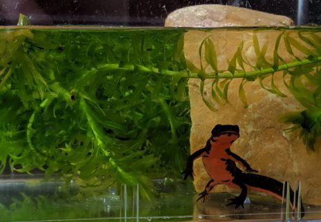 | 今年もまた、この季節がやってまいりました。 夏であります。 ホント、暑いですよねぇ~、毎日毎日・・・。 エアコンがぶっ壊れていて一切機能しない我が家は、特にこたえます。 ただ、前回紹介しましたように、 今はペットとしてモツゴとスジエビを飼ってますので、 水槽の中を気持ちよさそうに泳いで動き回る彼らを眺めてますと、涼しげな気分になるンですよねぇ。 なんだか落ち着きますし・・・。それで暑さを紛らわしてます。 さらに我が家には、 モツゴ・スジエビ水槽の下に、もうひとつ水槽がありまして、 そこにいるのが、こちら、アカハライモリであります。 |