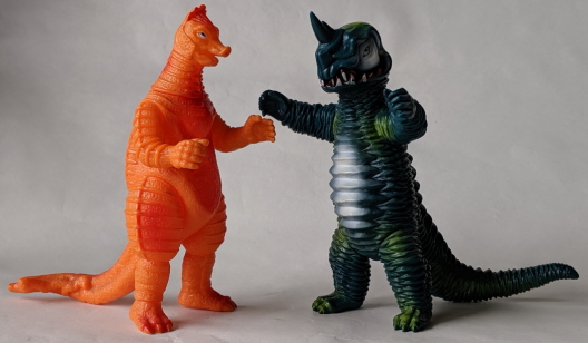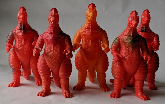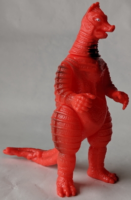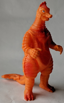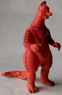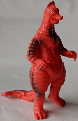 ジャーン! オレンジ色と赤の色違いソフビといえば、 こちらでございます。 バンダイのウルトラ怪獣シリーズのバニラ。 昭和59年に発売され、 それ以降、リニューアルが繰り返された中で、 このように、 オレンジ色をしたのものと赤い色をしたものが存在するのです。 |