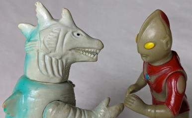 ・・・話が長くなってしまいましたが、 そんなわけで、 ムルチ人形にキングマイマイ人形の腕がくっついていても、 僕らの世代のソフビコレクターは苦にならないわけです。 それどころか、 いかにもブルマァクだなぁ・・・、 なんて微笑ましく思ってしまうくらい(笑)。 |