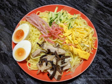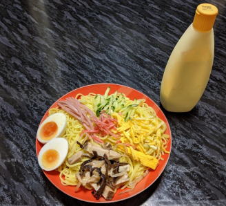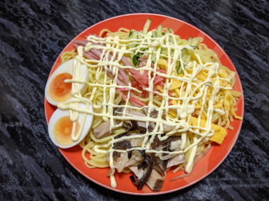 そんな冷やし中華、 僕ら名古屋人は、このように、マヨネーズをかけて食べます。