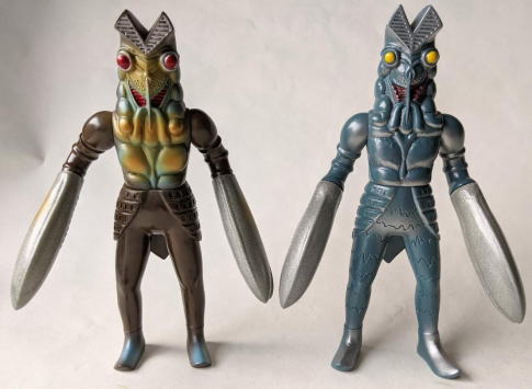 このぶっ飛んだカラーリングのタッコング人形や 三井グリーンランド版のウルトラマン人形とバルタン星人人形の再販が好評だったからか、 以降、ウルトラマンフェスティバルにおいて会場限定のソフビが発売されるのが恒例となり、 この『ソフビ大好き!』でも以前紹介した、 携帯式電子頭脳を持ってるザラブ星人人形(第67回「愛と美の法則」参照)や クリア成型に三色吹きのネロンガ人形(第81回「ファンタジーと現実」参照)などのような、 マニアやコレクター向けの凝った商品が、毎夏、世に放たれるようになりました。